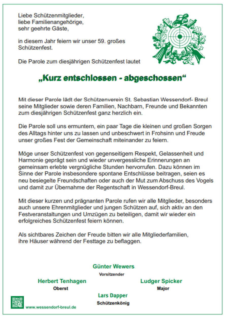 | 01.-03.08.2025 Schützenfest 2025 Festzelt am Immingfeldweg u.a. (Für das Festprogramm bitte nach unten scrollen.) |